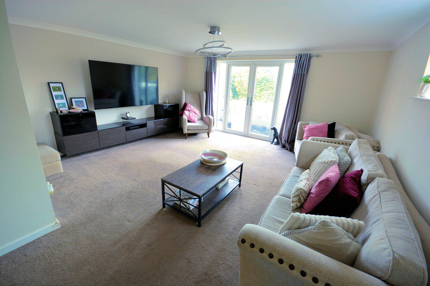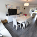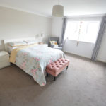 A double glazed frosted front door with matching side screens gives access into the spacious entrance hallway which has stairs rising to first floor, telephone point, understairs storage cupboard, parquet flooring and access into the cloakroom which has frosted window to side aspect, fully tiled walls, parquet flooring, vanity unit with inset wash hand basin and mixer tap and low level flush WC. The light and airy sitting room has double opening doors with side screens giving access to the rear garden, further frosted window to side and TV point. The kitchen has double opening doors leading to the rear garden, range of wall and floor mounted cupboards, work surfaces over, part tiled walls, one and a quarter single sink with drainer and mixer tap, tiled flooring, nest of three pan drawers, breakfast bar eating area and integrated appliances to include wine cooler, fridge, freezer, double oven, warming drawer, microwave and dishwasher. Off the kitchen is the sizeable dining room which has wood effect laminate flooring and window to front aspect. The study has window to front aspect, fitted wardrobe with double opening doors and parquet flooring. To complete the accommodation on the ground floor is the utility room which has frosted window to side, tiled flooring, wall mounted ‘Glow-worm’ boiler, hot water tank and space for tumble dryer and washing machine.