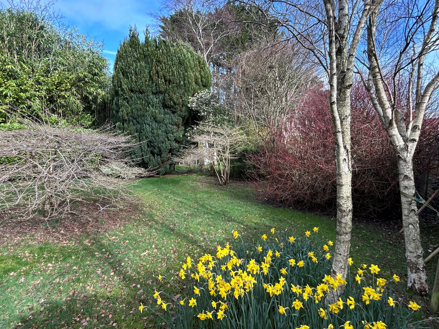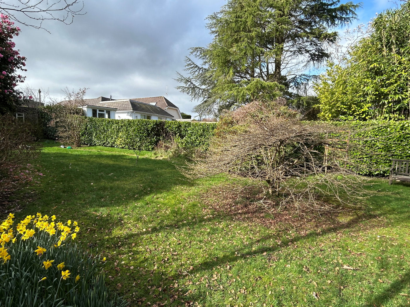 To the front of the property is an area laid to lawn and a driveway providing off road parking for a number of vehicles in turn leading to the detached single garage which has double opening doors, light, power and timber door to side. One of the main features of this property is the sizeable and mature rear garden which is predominantly laid to lawn with mature shrub and timber fence borders. Access along the side in turn leads to the front.