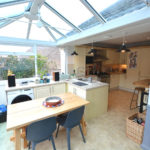 The front door leads to the entrance hallway with exposed parquet flooring and access to loft space. The sitting room also has exposed parquet flooring, inset ceiling speakers and large window to front aspect. The modern fitted open plan kitchen/diner/conservatory has a range of wall mounted and base storage cupboards and drawers, integrated appliances to include fridge/freezer, five ring burner gas hob with triple ovens and extractor fan oven, dishwasher and microwave, single ceramic bowl and drainer with mixer tap, built in wine rack, space and plumbing for washing machine and sliding patio doors to the rear garden.