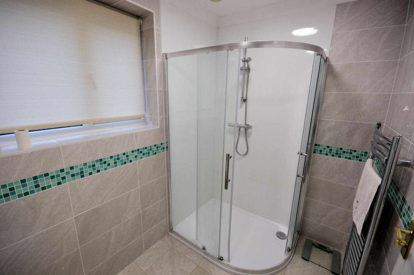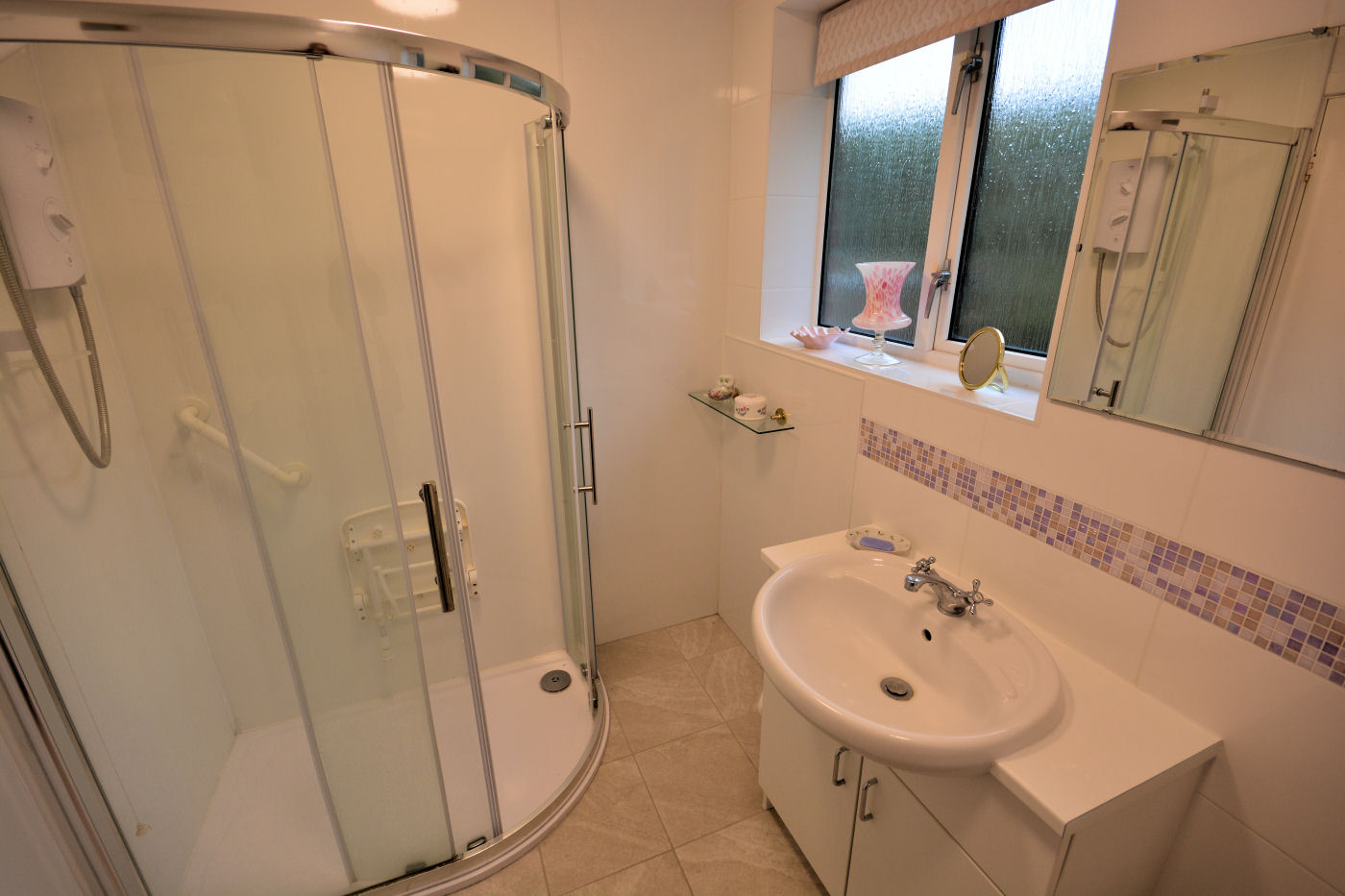Bedroom one is to the rear of the property with dual aspect windows and built in wardrobes. The en suite shower room comprises corner shower cubicle and extractor fan, wall mounted shower, low level flush WC, wash hand basin with mixer tap and vanity unit beneath, wall mounted heated towel rail and part tiled walls. Bedroom two is to the front of the property with built in wardrobe with mirrored fronts. The shower room comprises low level flush WC, wash hand basin with mixer tap and vanity unit beneath, corner shower cubicle with wall mounted electric shower, extractor fan and wall mounted heated towel rail.