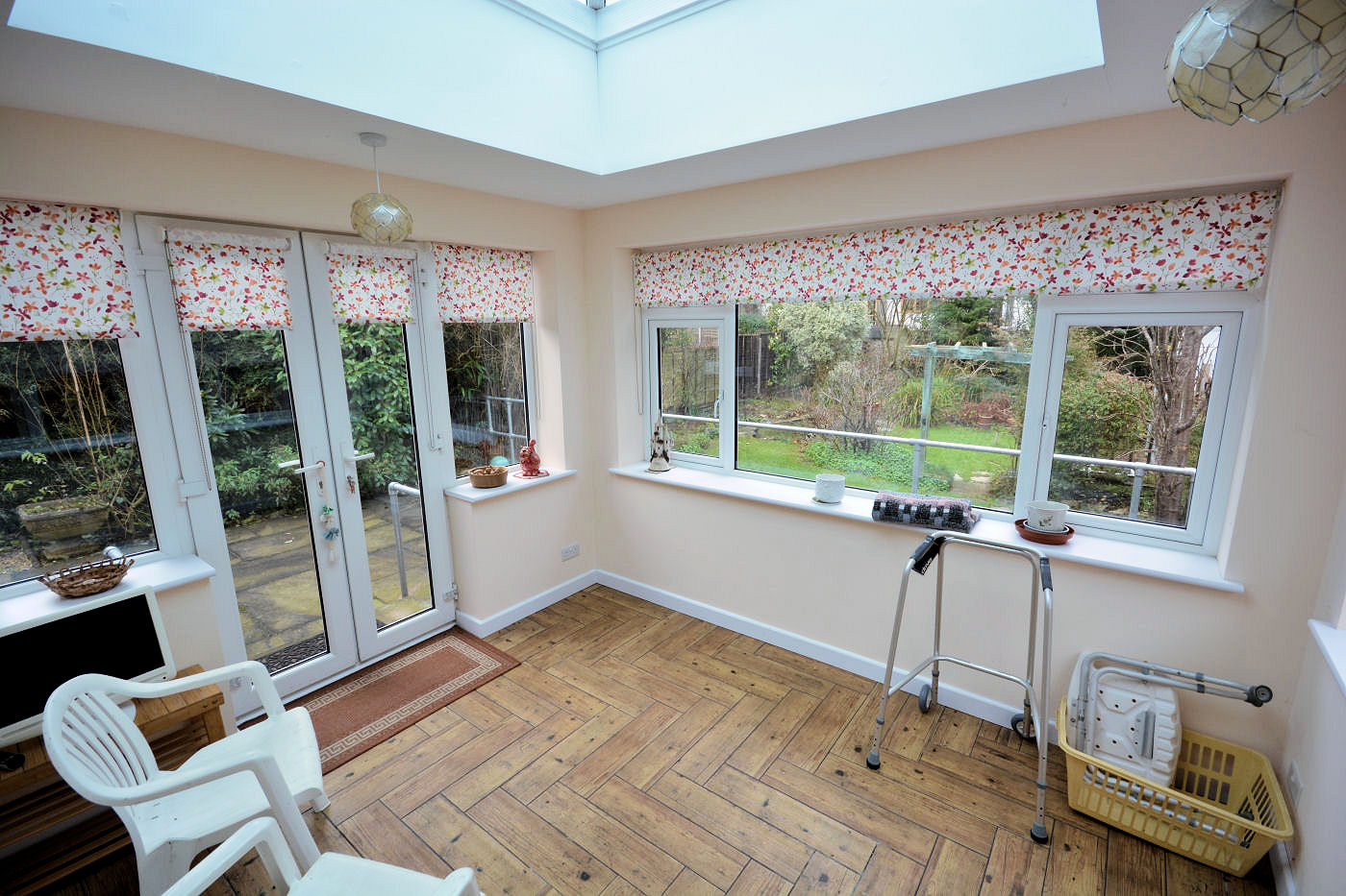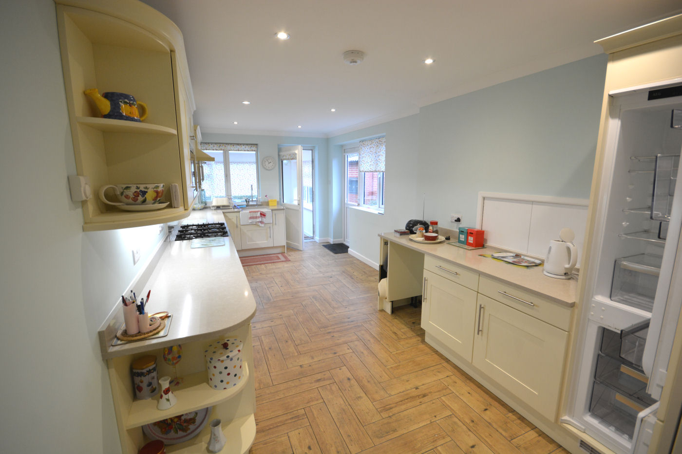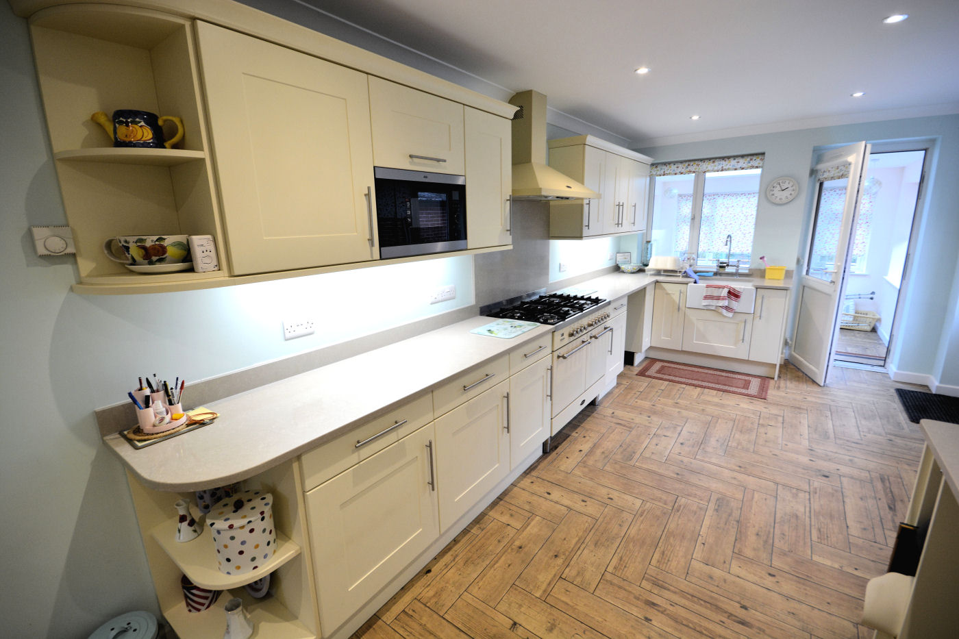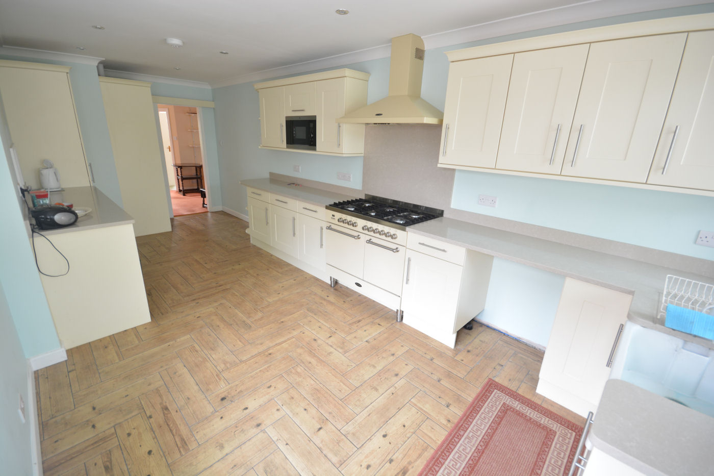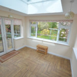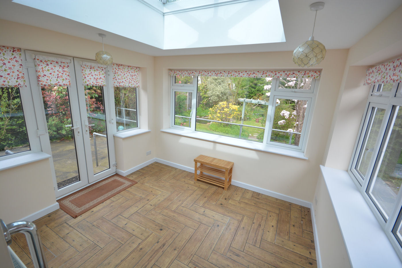 Obscured glazed front door leads to the spacious entrance hallway with built in cupboard and access to loft space. The sizeable lounge/dining room has triple aspect windows, feature gas fireplace with stone surround and hearth and serving hatch to the kitchen. The modern fitted kitchen/breakfast room has a range of wall mounted and base storage cupboards and drawers, ‘Butler’ style sink with mixer tap, integrated six ring burner hob with double oven beneath and extractor fan above, integrated ‘AEG’ microwave and integrated fridge/freezer, space and plumbing for washing machine and dishwasher, window and door to the side aspect, feature spotlighting and further door to the garden room with triple aspect windows, double opening doors to the rear garden and feature roof lantern.