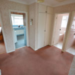 Via an open storm porch a UPVC double glazed frosted front door gives access into the spacious entrance hallway which has loft access via a hatch and two useful storage cupboards, one of which houses the hot water tank. The light and airy lounge has feature bay window to front aspect, two further frosted windows to side, TV point and central fireplace with tiled hearth, surround and mantel. The kitchen has window and double glazed frosted door to rear, further window to side, range of wall and floor mounted cupboards, worksurfaces over, part tiled walls, single sink with drainer either side and hot and cold tap and space for fridge, freezer and oven.
