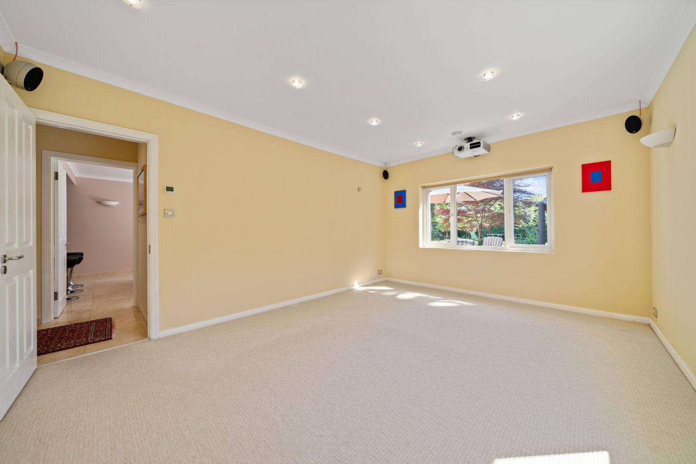 For year-round relaxation, the beautifully appointed pool room houses a raised, heated indoor endless swimming pool, set within Travertine surrounds and opening directly onto the garden’s patio area.