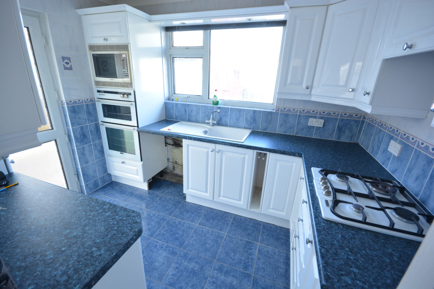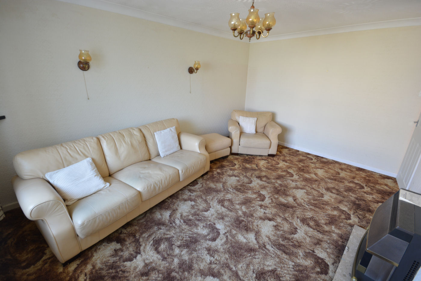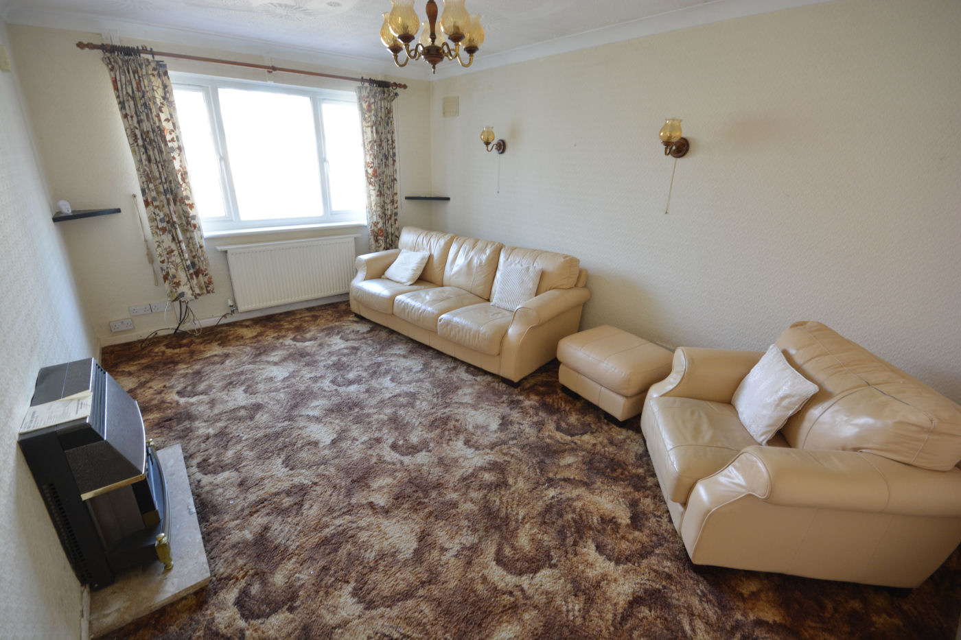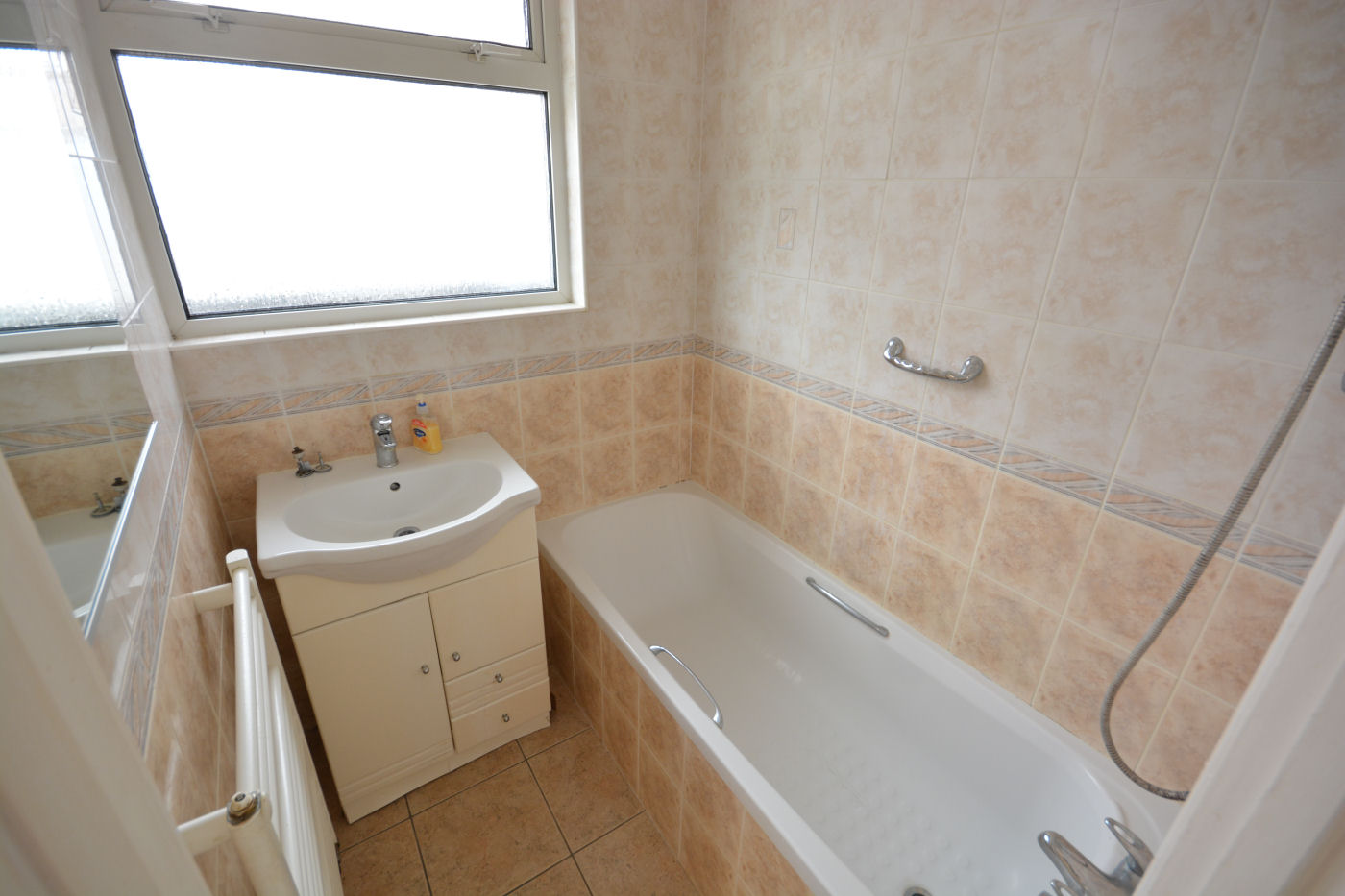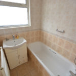 At the side of the property a frosted double glazed door gives access into the entrance hallway which has loft access via a hatch and storage cupboard housing the ‘Glow- worm’ boiler. The spacious sitting room has window to rear aspect, telephone point, TV point and gas fire with marble effect hearth. The kitchen has window to rear aspect, frosted door to side, range of wall and floor mounted cupboards, fully tiled walls, roll top working surfaces, single sink with drainer and mixer tap, nest of four drawers, space and plumbing for washing machine, tiled flooring and integrated appliances to include fridge, freezer, oven, grill, microwave (not working), four ring gas hob and extractor fan over.