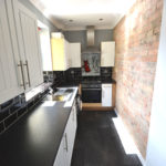 Communal entrance lobby and stairs lead to the first floor where the apartment is accessed. Hard wood front door leads to the entrance hallway which has access to loft space, built in meter cupboard and recess for fridge/freezer. The hallway is open plan to the modern fitted kitchen with a range of wall mounted and base storage cupboards and drawers, single bowl single drainer sink unit with mixer tap, space and plumbing for washing machine, integrated oven with four ring burner gas hob and extractor fan above, feature exposed brick wall, inset spotlighting and cupboard housing the gas fired central heating boiler.