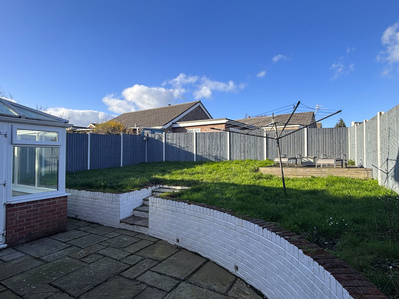 The house is approached by a single width driveway access, the block paved driveway providing private off-street parking as well as giving access to the attached garage. The gardens to the rear can be accessed via doors from the conservatory, with sun patio which extends to the side and a ‘nook’ seating area situated at the rear of the garage. The remainder of the gardens are slightly elevated and laid mainly to lawn whilst being enclosed on all three sides.