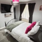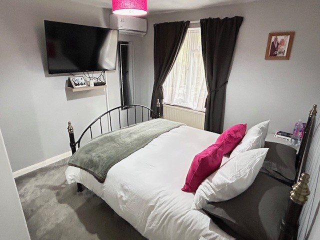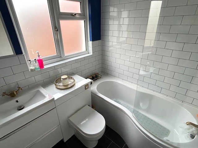 Bedrooms one and two both benefit from windows to rear aspect with pleasant views over local woodland, built in wardrobes and bedroom one has an air conditioning unit. Bedrooms three and four both have windows to front aspect with bedroom three benefitting from fitted wardrobes, one of which houses the hot water tank. The family bathroom has frosted window to side aspect, part tiled walls, towel ladder radiator, vanity unit with inset wash hand basin with mixer tap, low level flush WC and p-shaped bath with mixer tap and ‘Mira’ shower over.