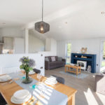 Arriving at the Tuscany, you are greeted by two luscious, deep sofas, a traditional cream electric wood burning stove sitting on a décor ceramic tile hearth and a wooden ‘scandi’ style coffee table to put your feet up with a ‘night cap’ after an invigorating day out exploring. The furniture is placed in the perfect position to get lost in a book, exposed to the views with the French doors wide open allowing the late afternoon light to pour in.