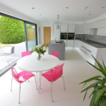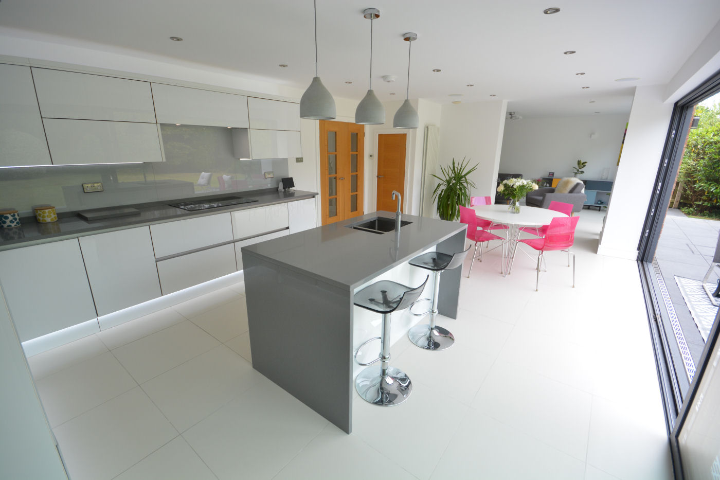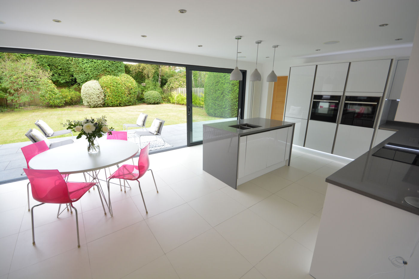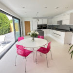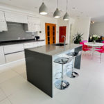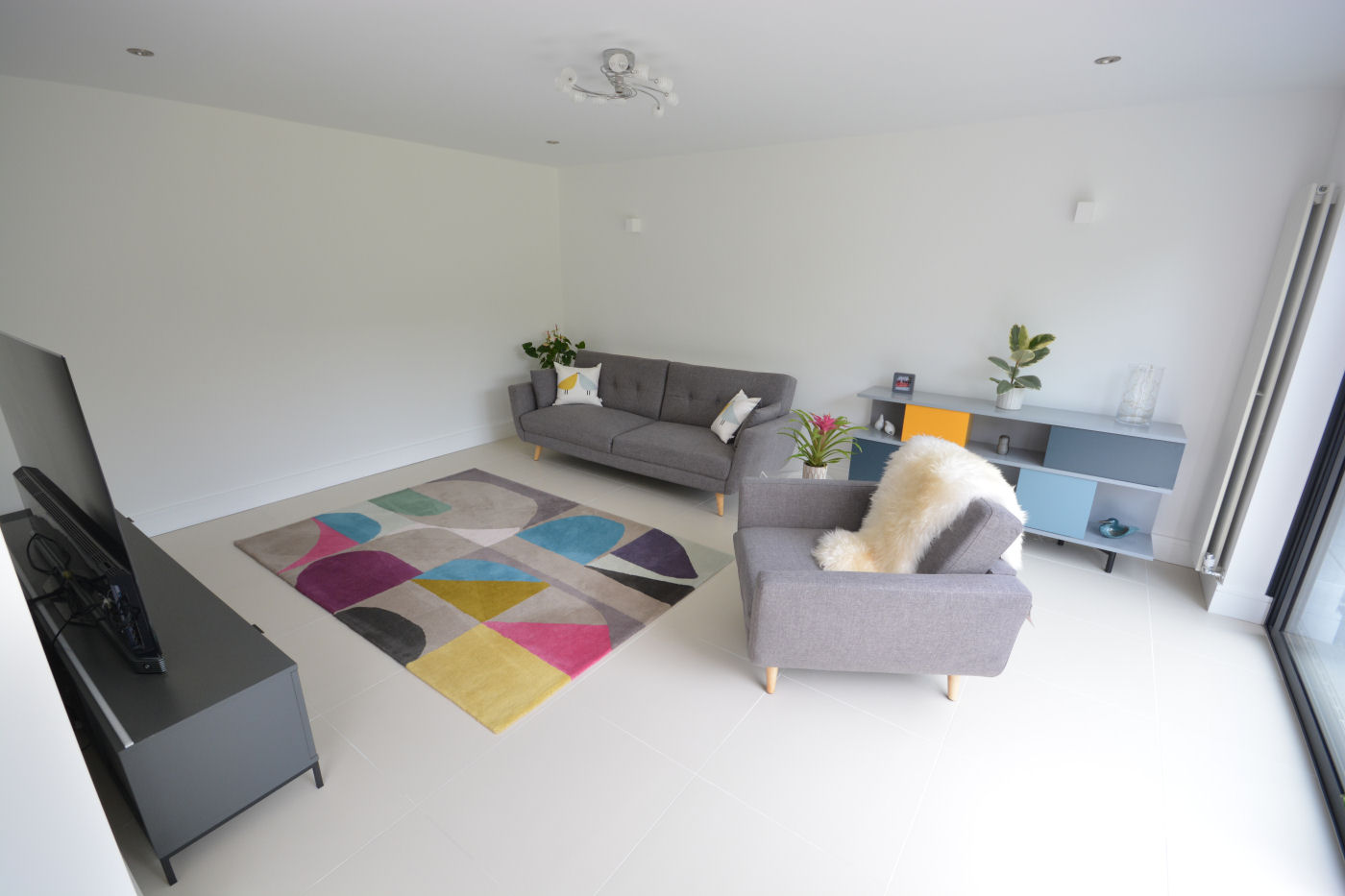 Open to the kitchen/diner, the family room extends the open-plan feel with ceiling-mounted Sonos speakers, creating an immersive audio environment ideal for family gatherings and entertainment.