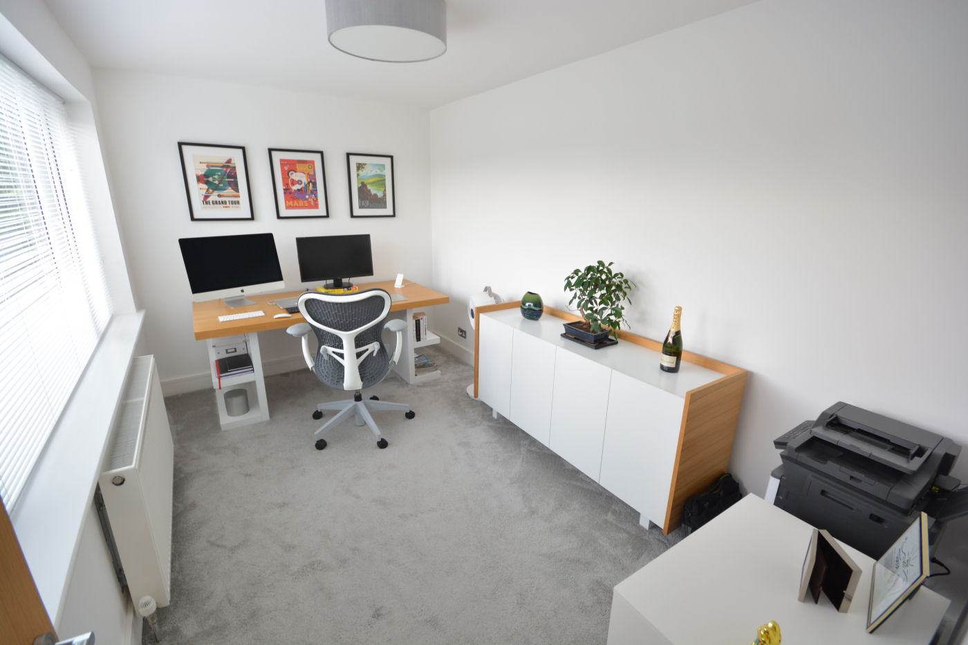 Adjacent to the cloakroom, the study offers a quiet and practical workspace with a view of the front aspect, ideal for those who work from home. Following the study is the sitting room, a thoughtfully designed space for relaxation, offering comfort and elegance.