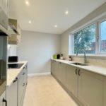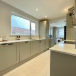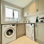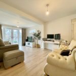 A double glazed door gives access into the entrance porch, which has window to side aspect, in turn leading to the dining room which has window to front aspect, stairs rising to first floor, feature wood panelling and luxury vinyl tiles. The light and airy lounge has wood effect laminate flooring, TV point and double opening doors with matching side screen giving access to the rear garden. The modern fitted ‘Magnet’ kitchen has window and door to side, further window to rear, range of wall and floor mounted cupboards, ‘Quartz’ worksurfaces over, one and a quarter single sink with integrated drainer and mixer tap, further sink with mixer tap, nest of three pan drawers, space for tumble dryer, washing machine and American style fridge/freezer, loft access via a hatch, luxury vinyl tiles and integrated appliances to include dishwasher, freezer, oven, four ring ceramic hob and extractor fan over.