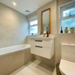 Bedroom one has window to front aspect and benefits from built in ‘Sharps’ wardrobes with mirrored front. Bedroom two has window to rear aspect and benefits from an ‘over stairs’ storage cupboard. Bedroom three has window to front aspect and bedroom four has window to rear aspect with pleasant views over the rear garden. The modern fitted family bathroom has two frosted windows to side, fully tiled walls and flooring, electric towel radiator, low level flush WC, vanity unit with inset wash hand basin and mixer tap and bath with mixer tap and shower over.