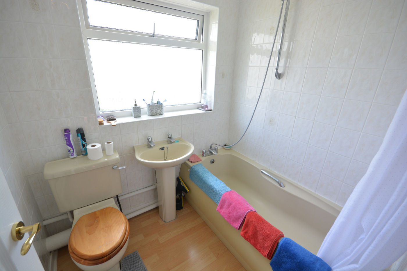 The first floor landing has loft access via a hatch and airing cupboard with hot water tank and slatted shelving. Bedrooms one and two both have windows to front aspect and benefit from built in wardrobes. Bedrooms three and four both have wood effect laminate flooring and windows to rear aspect with pleasant views over the rear garden with bedroom four also benefiting from a built in cupboard. The family bathroom has frosted window to rear aspect, tiled walls, wood effect laminate flooring, low level flush WC, pedestal wash hand basin with hot and cold tap and panel enclosed bath with mixer tap and shower attachment over.