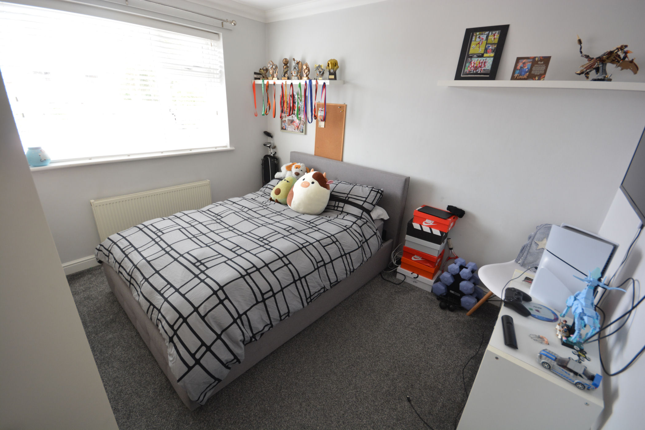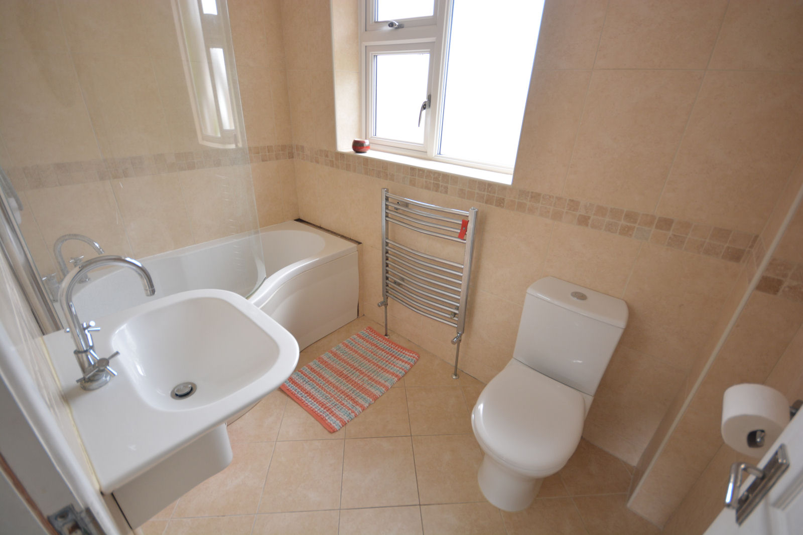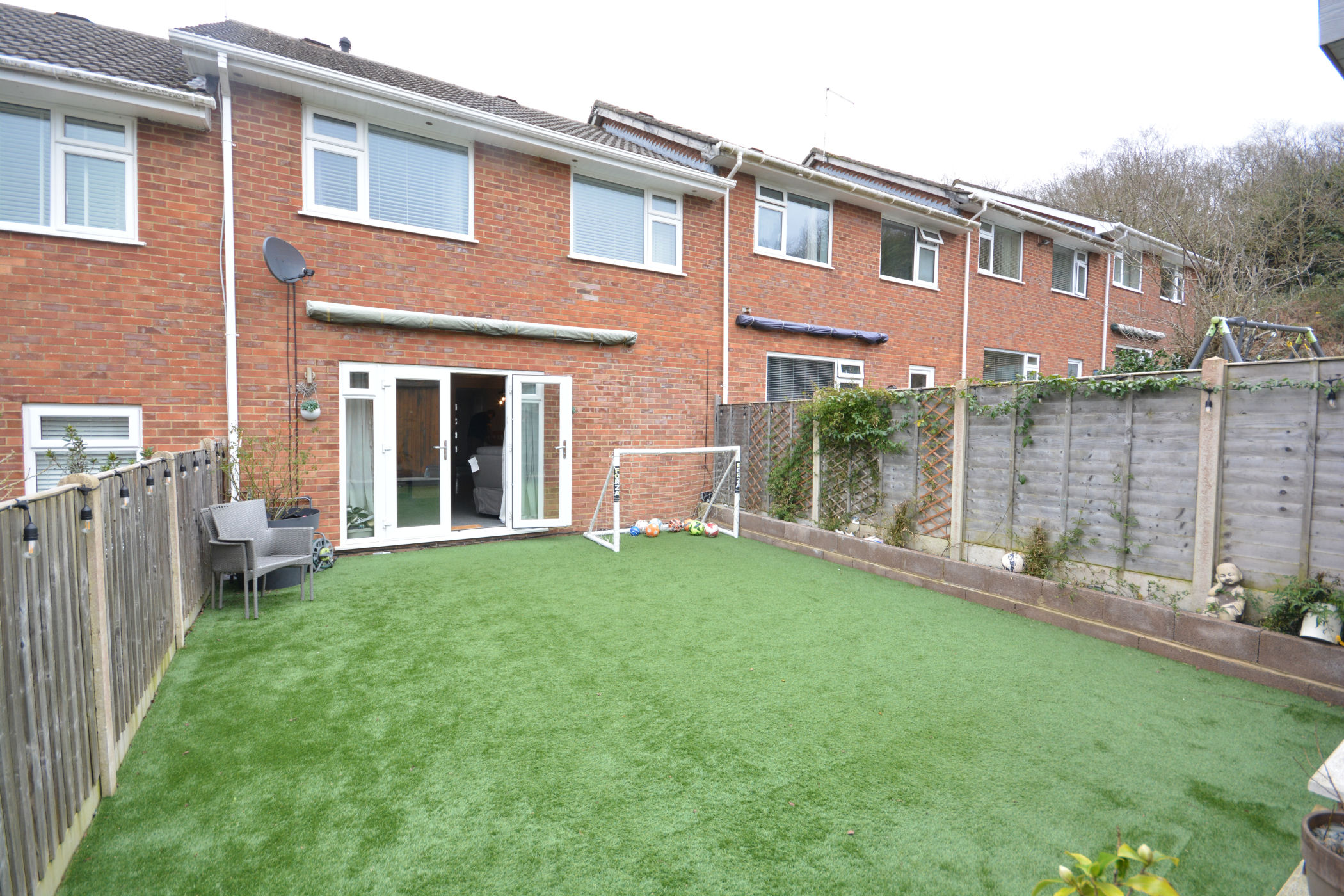 The first floor landing has a number of inset spotlights, loft access via a hatch and storage cupboard housing the ‘Glow-worm’ boiler. Bedroom one has TV point, window to rear aspect and a range of fitted furniture to include wardrobes and drawers. Bedroom two has window to front aspect and fitted wardrobes with sliding doors. Bedroom three has window to rear aspect and built in storage cupboard. The modern family bathroom has frosted window to front aspect, fully tiled walls and flooring, towel ladder radiator, low level WC, wash hand basin with mixer tap and panel enclosed p-shaped bath with mixer tap and separate shower over.