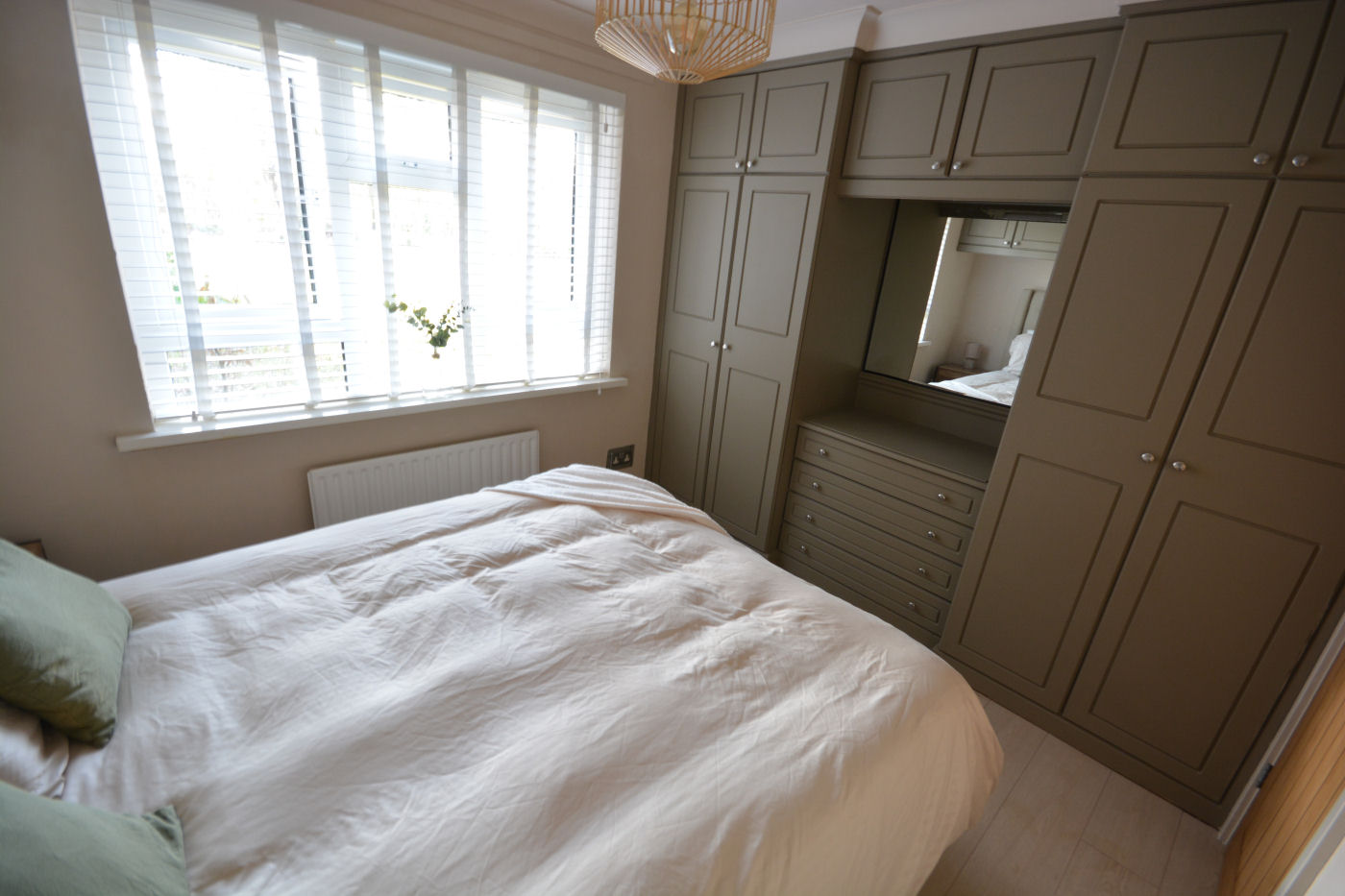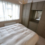 The bedroom has window to rear aspect, wood effect flooring and a range of fitted furniture to include cupboards, drawers and wardrobes. The family bathroom has frosted window to front aspect, towel ladder radiator, fully tiled walls, wood effect flooring, low level flush WC, vanity unit with inset wash hand basin and mixer tap and panel enclosed bath with mixer tap and shower over.