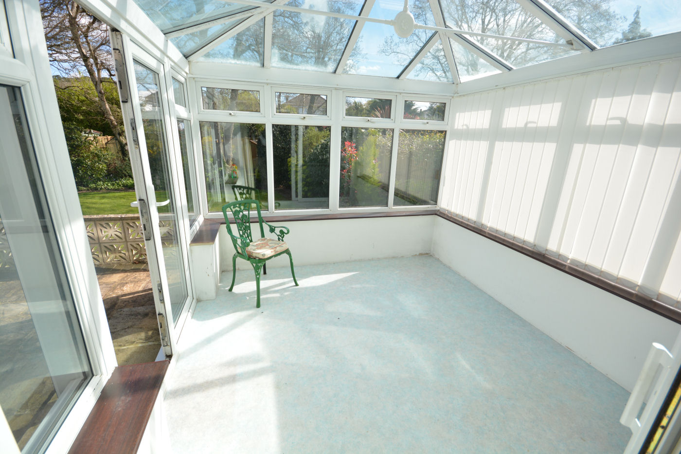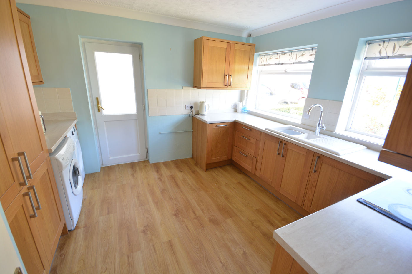 A double glazed door gives access into the entrance porch and via a timber glazed door with matching side screen gives access into the entrance hallway which has loft access via a hatch, telephone point, storage cupboard with slatted shelving and further storage cupboard with double opening doors to a cupboard above. The kitchen has two windows to front aspect, frosted double glazed door to side, range of wall and floor mounted cupboards, roll top working surfaces over, part tiled walls, one and a quarter single sink with drainer and mixer tap, wood effect flooring, nest of three drawers, space for washing machine, tumble dryer and tall fridge/freezer and integrated appliances to include oven, four ring ceramic hob and extractor fan over. The light and airy sitting room has frosted window to side aspect, TV point and central fireplace with inset gas fire with marble effect hearth, surround and ornate mantel. Off the sitting room sliding doors give access to the conservatory with pleasant views over the garden with double opening doors leading out to the side.