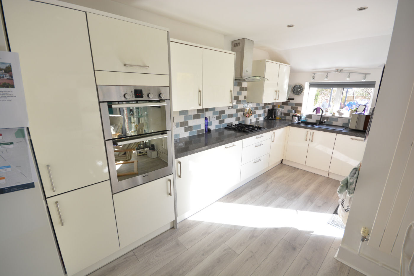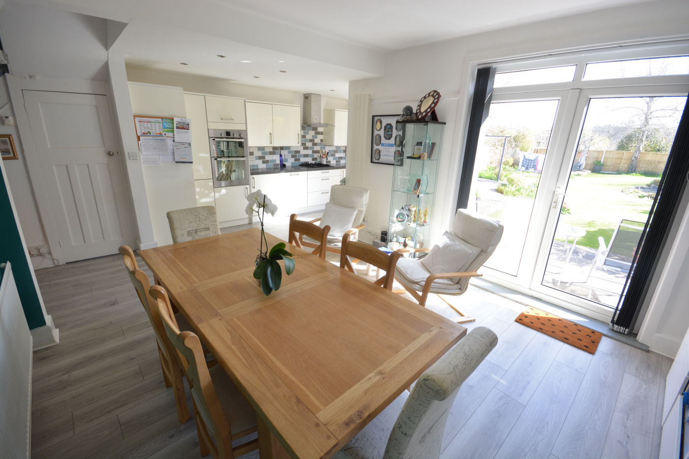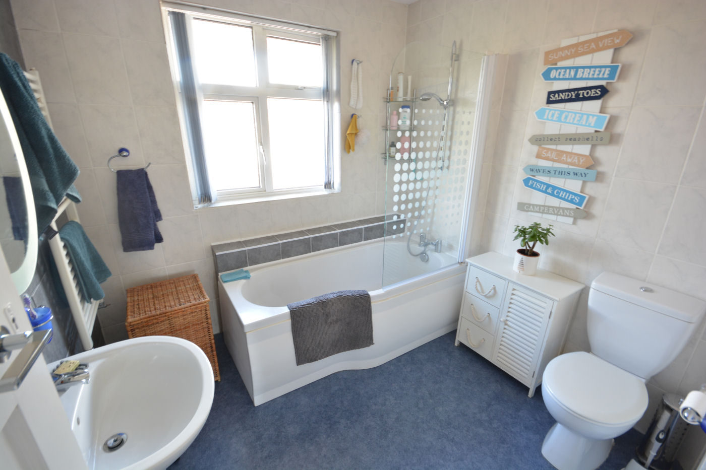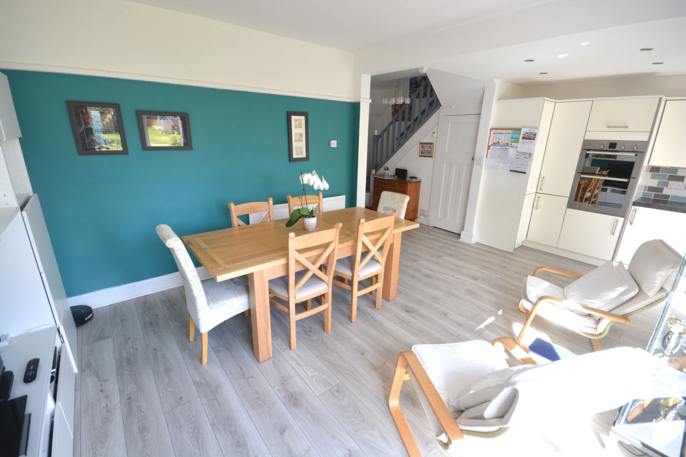 Via the double glazed frosted front door gives access into the entrance hall which has stairs rising to the first floor and access into the cloakroom which has frosted window to front aspect, part tiled walls, low level flush WC and corner wash hand basin with hot and cold tap. The light and airy lounge has windows to front and side aspect, picture rails, TV point and wall mounted electric fire. The kitchen/dining room has double opening doors and further door leading to the rear garden, window to rear, range of wall and floor mounted cupboards, working surfaces over, part tiled walls, single sink with drainer and mixer tap, nest of three pan drawers and integrated appliances to include fridge, dishwasher, oven, grill, four ring gas hob and extractor fan over. The utility room has two windows and door to rear, range of wall and floor mounted cupboards, roll top working surfaces over, part tiled walls, single sink with drainer and mixer tap, wall mounted ‘Valliant’ boiler and space for fridge, freezer, washing machine and tumble dryer.