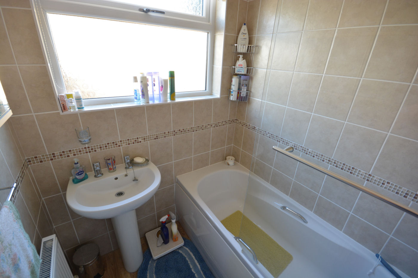 Bedroom one has windows to front and side aspects and benefits from fitted wardrobes with mirrored front. Bedroom two has window to side aspect and also benefits from fitted wardrobes with mirrored front. Bedroom three (currently being used as a dining room) has window to rear aspect with pleasant views over the garden. The modern fitted family bathroom has frosted window to side aspect, fully tiled walls, pedestal wash hand basin with hot and cold tap and panel enclosed bath with hot and cold tap and shower over. The separate cloakroom has frosted window to side aspect, fully tiled walls and low level flush WC.