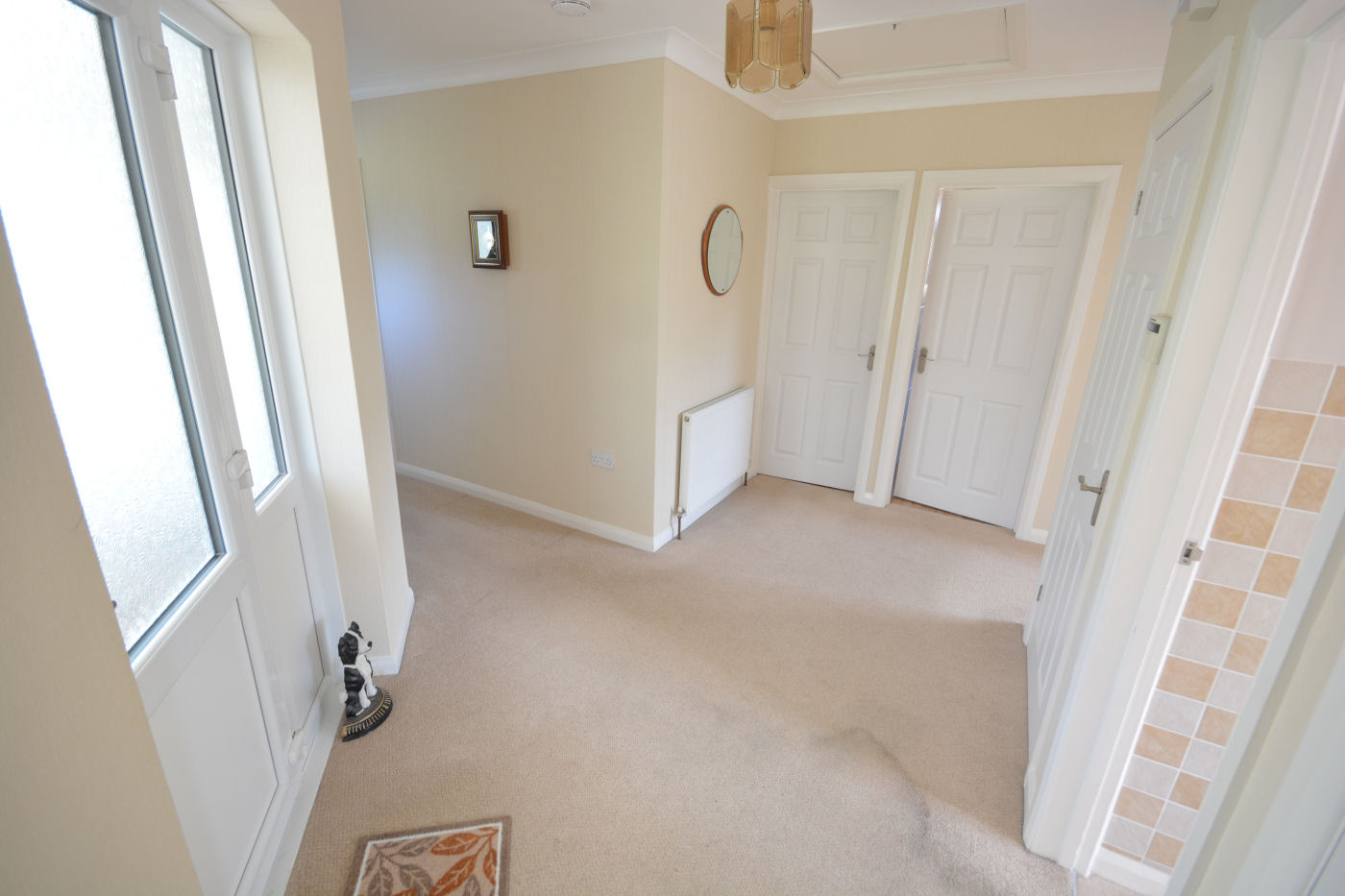 To the front and side of the property is a large well maintained garden being laid to lawn with central pathway leading to the front door. To the rear of the property is a driveway providing off road parking for a number of vehicles in turn leading to the single garage which has up and over door, light, power and personal door to side. The low maintenance rear garden is mainly laid to slabs providing ample seating, bound by timber fence and mature shrub borders. There is hardstanding for garden shed. Access along the side of the property via a timber gate in turn leads to the front.