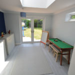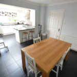 A double glazed frosted front door gives access into the entrance hall which has stairs rising to the first floor, telephone point and access into the cloakroom which has frosted window to front aspect, part tiled walls, corner wash hand basin with mixer tap and low level flush WC. The light and airy sitting room has window to front aspect, two further windows to side, TV point and archway leading through to the office area/playroom which has Velux window, window to side and double opening doors leading to the rear garden. The dining area has understairs storage cupboard, tiled flooring and access into the kitchen which has frosted door and window to rear, range of wall and floor mounted cupboards, roll top work surfaces, part tiled walls, Velux window, nest of three drawers, one and a quarter single sink with drainer and mixer tap, tiled flooring and space for washing machine, tumble dryer, American style fridge/freezer, dishwasher, Range cooker and integrated extractor fan over.