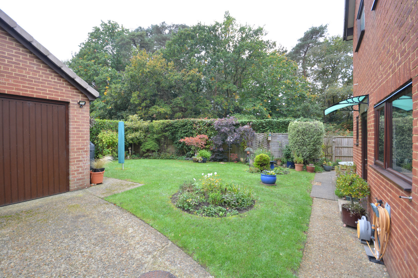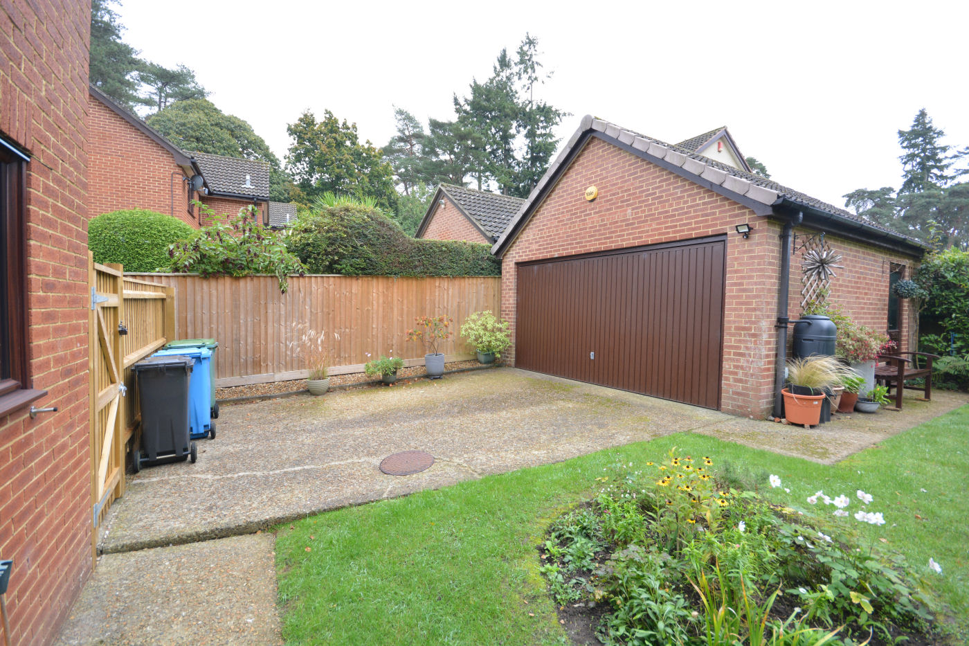 To the front of the property is an area laid to lawn with central pathway and steps leading up to the front door. At the side a driveway provides off road parking for a number of vehicles in turn leading to the double detached garage which has electric up and over door, light, power and personal door to side. The secluded southerly facing rear garden is mainly laid to lawn with an area running adjacent to the property providing a seating area, both of which have timber fence and mature shrub borders. There is further storage to one side of the property with hard stand for shed, tap and access down the other side in turn leading to the front.