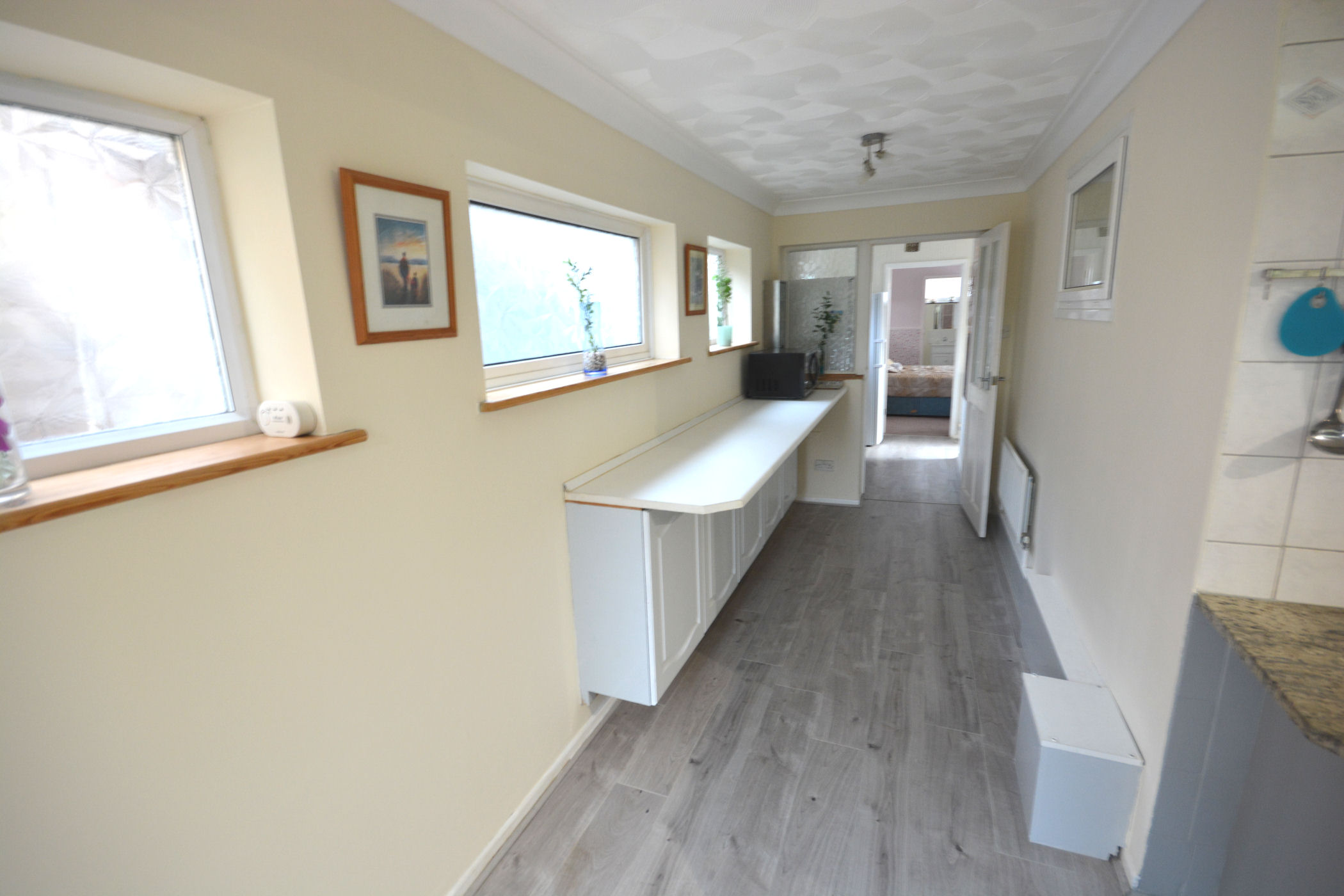 Part glazed front door leads to the entrance hallway which has built in storage cupboard and access to loft space. The bright and airy lounge has triple aspect windows, gas fireplace and hearth and two radiators. The L- shaped kitchen/breakfast room comprises a range of wall mounted and base storage cupboards and drawers, integrated double oven with five ring burner gas hob, space and plumbing for washing machine, one and a half bowl single drainer stainless steel sink unit with mixer tap, space and plumbing for dishwasher, part tiled walls and double opening doors to a small courtyard area. The lobby area comprises access to loft space and door to the rear garden. Bedroom one has a window to the side aspect and an en suite shower room comprising WC, wash hand basin with twin taps and vanity unit beneath, fitted mirror, tiled shower cubicle with wall mounted electric shower and extractor fan.