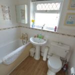 At the side of the property via an open storm porch a UPVC double glazed frosted front door with matching side screen gives access into the spacious entrance hallway which has airing cupboard housing the hot water tank and slatted shelving, telephone point and stairs rising to the first floor. The light and airy sitting room has windows to side and rear aspect, TV point and central fireplace with gas fire, polished Purbeck Stone hearth and Purbeck stone surround. The kitchen has frosted window to side, window and door to rear, range of wall and floor mounted cupboards, roll top working surfaces, part tiled walls, one and a quarter single sink with drainer and mixer tap and integrated appliances to include fridge, freezer, washing machine, dishwasher, oven, grill and four ring ceramic hob. Off the kitchen is the conservatory which has frosted door to side and double opening doors leading out to the rear garden. Bedroom one has window to front aspect and benefits from a range of furniture to include wardrobes, drawers and cupboards. Bedroom two has windows to front and side aspect and benefits from a range of fitted furniture to include wardrobes, drawers and cupboards. The family bathroom has frosted window to side aspect, part tiled walls, low level flush WC, pedestal wash hand basin with hot and cold tap, panel enclosed bath with mixer tap and shower attachment over and ‘Mira’ shower.